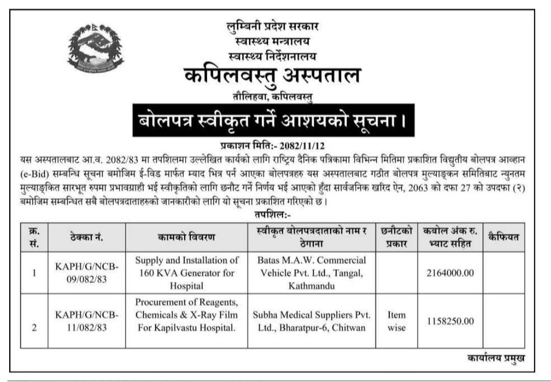 बोलपत्र न KAPH/G/NCB-11/082/83 Procurement of Re…